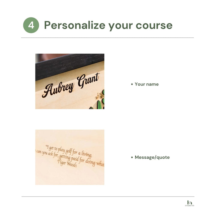 Fill in the info you want to request us: golf info, hole info, name to personalize, choose size, frame...