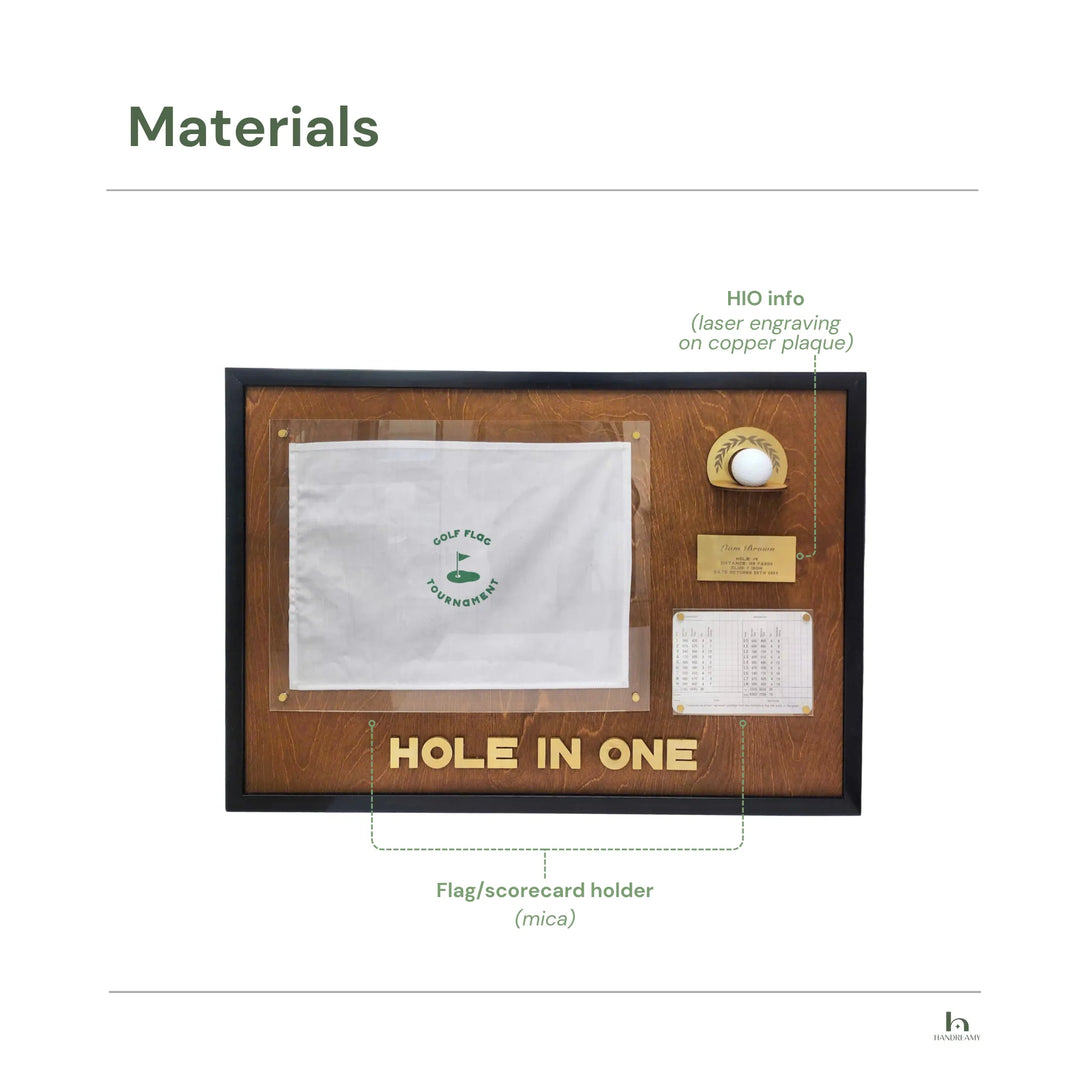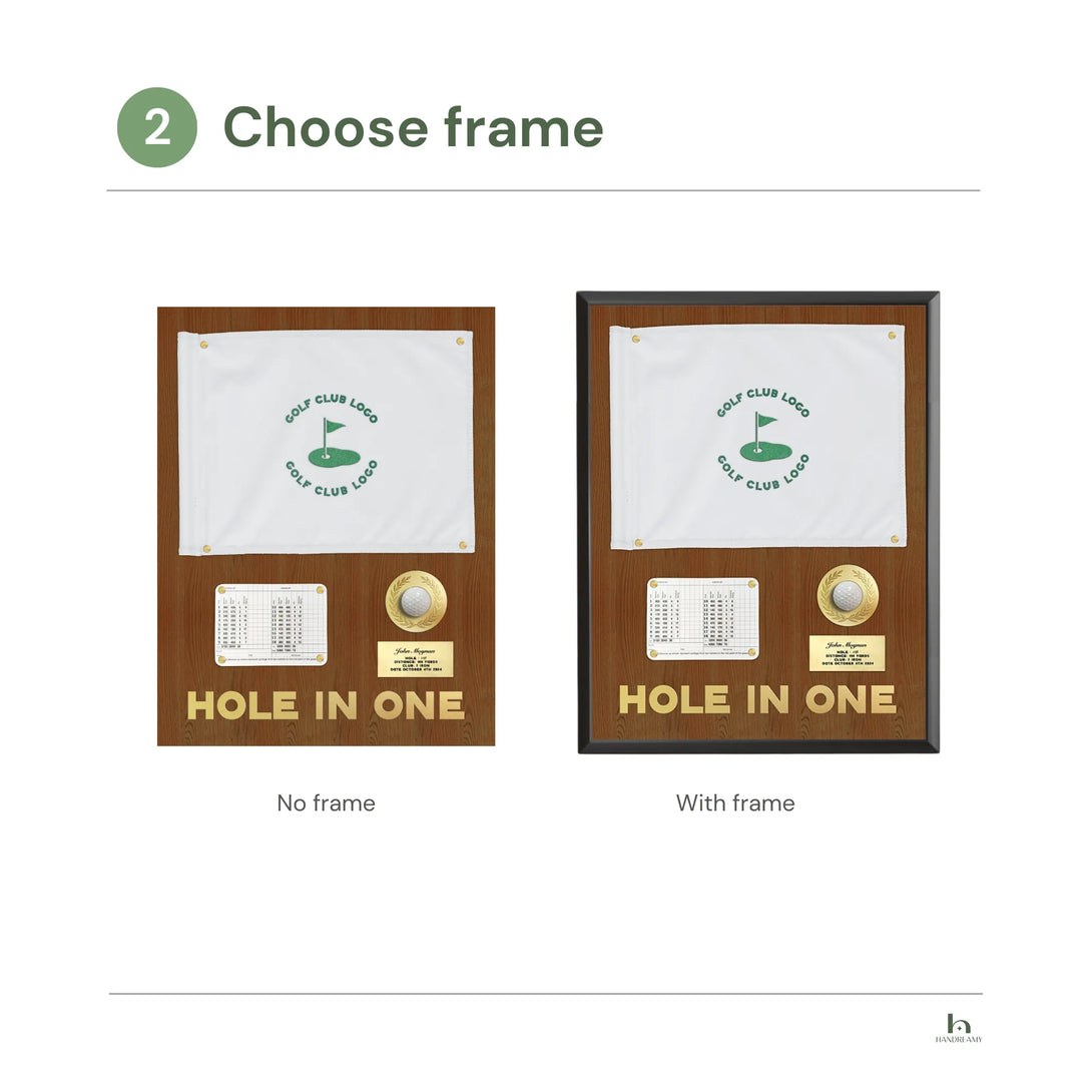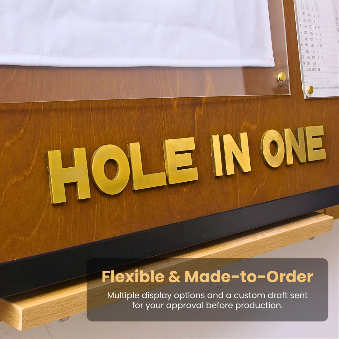 Keywords: Custom hole-in-one flag display, personalized golf trophy, golf achievement plaque, hole-in-one memorabilia, custom golf flag mounting, golf room décor, championship golf display