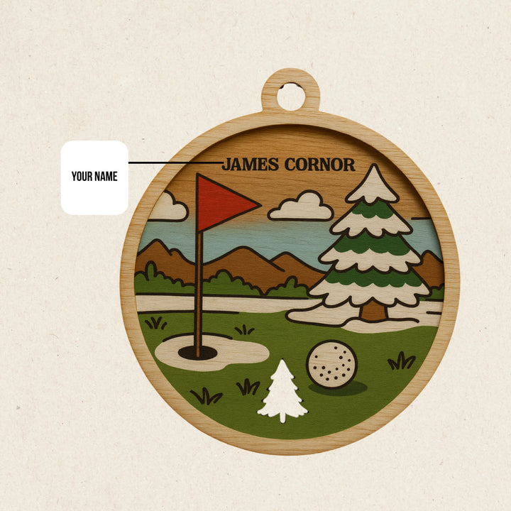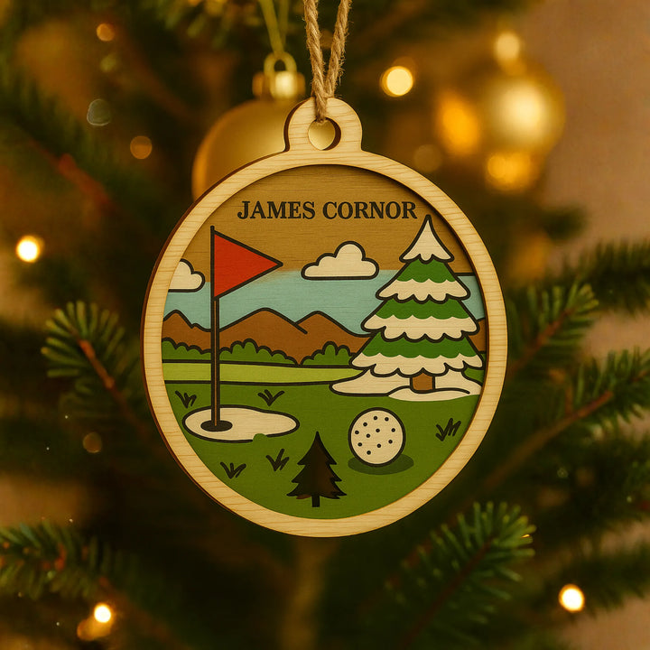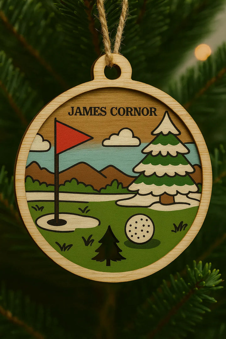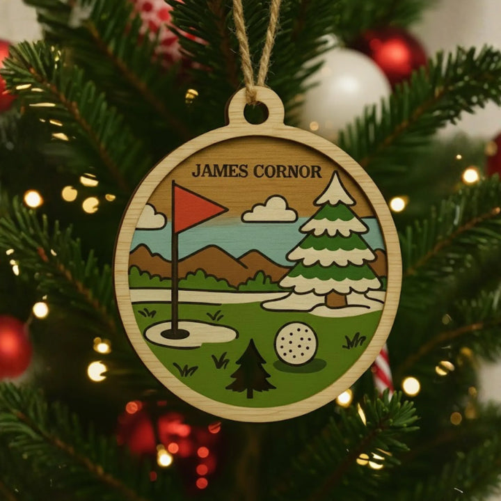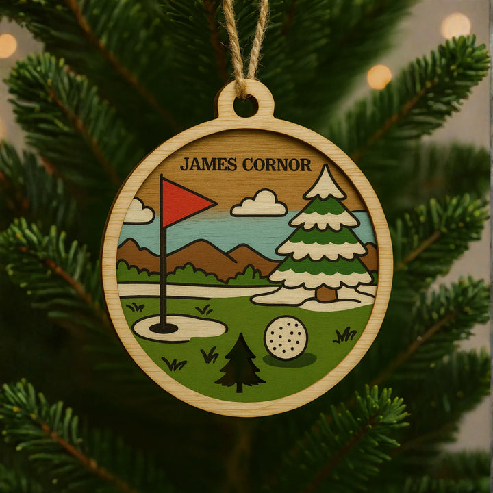 Bring your passion from the fairway to your Christmas tree with this beautifully crafted 3D golf ornament. It's a cozy, rustic reminder of your favorite game, even in the middle of winter.